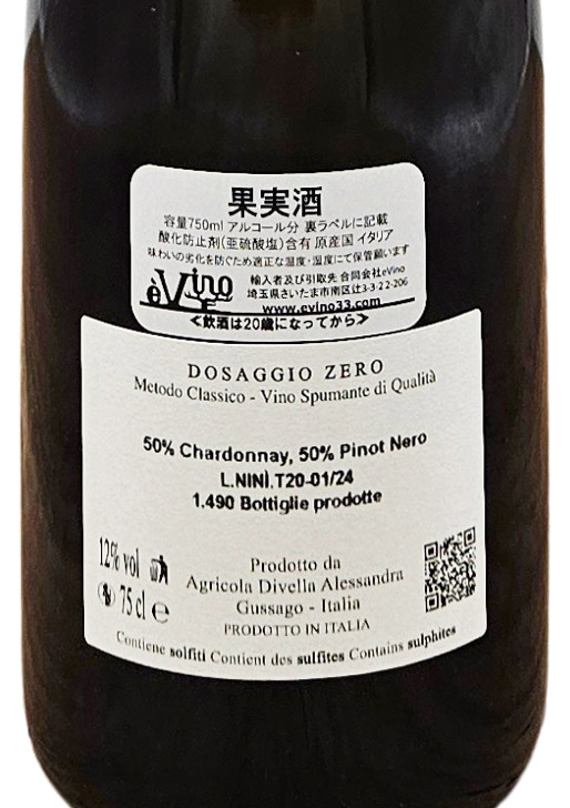 ドサージュ(糖分、リキュール添加)もSO2も一切添加しないスプマンテ。