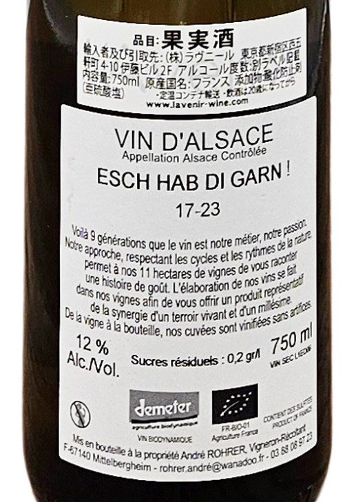 Esch Hab di Garn, AOC Alsace / エッシャープ・ディ・ガルン、AOCアルザス NV(2017-23)