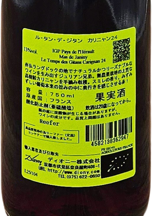 コミカルで陽気なエチケットとキュートなコルクが一際目を引く南仏ビオ「ルタンデジタン」の赤ラベルは、ニームとベジエの間にあるサン・ボジル・ド・ラ・シルビー村の高樹齢カリニャンを丁寧に醸造しました。