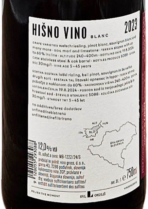 ヒスノヴィーノとはスロベニア語でハウスワインの意味。