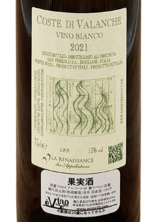 石灰質、砂質の強い土壌は、今までのビアンコとは大きく印象の異なる、繊細さ、香り、奥行きをもった白。