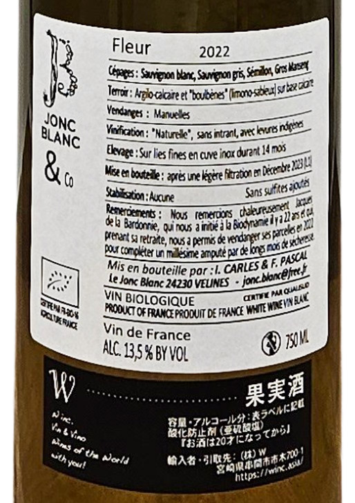 葡萄の花のエチケット明るいカリン色、海苔、ヨード、海のミネラル、充実した果実味、まろやかさとフレッシュさのバランス良し!