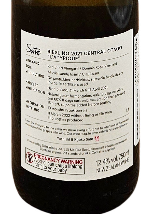 Sato Riesling L'atypique / サトウ リースリング・ラティピック 2021