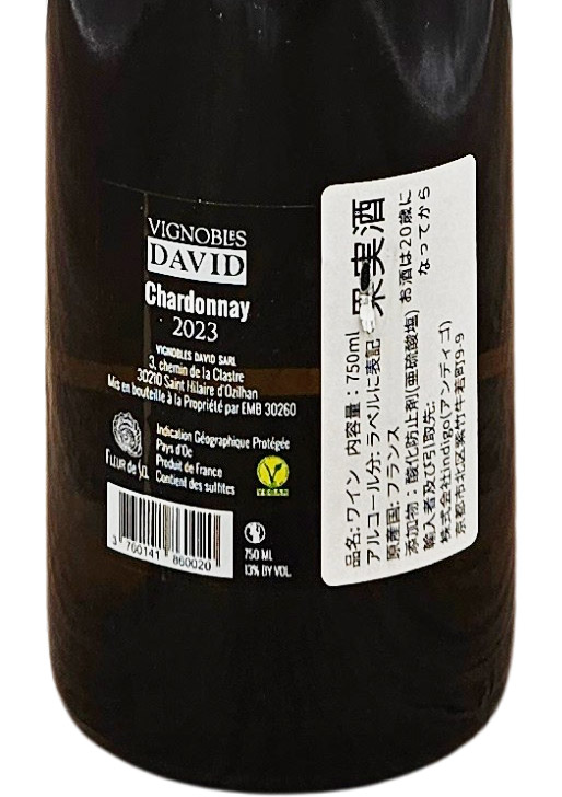 コート デュ ローヌで栽培しているシャルドネを使用しているので、A.O.Cはヴァン ド ペイ ドッグに属しますが、ローヌの地で栽培されたシャルドネをステンレスタンクで1年間熟成したものと、ルーサンヌを1年間樽熟成したものをフレデリック ダヴィッドの感性でアッサンブラージュし、オリジナルのオーガニックワインを作り出します。