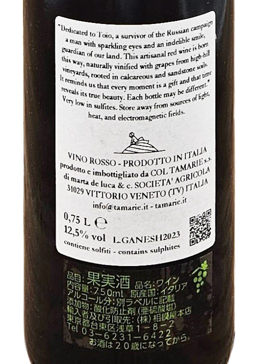 彼が赤ワインが好きだったので、彼に捧げるワインとして、彼のニックネーム、トイオと名付けた。