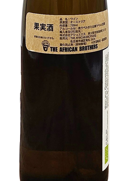 手摘みで収穫、選果後、全房プレス(15%はスキンコンタクト)、ステンレスタンクと古樽に移し、自然発酵。