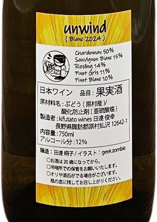 春先、ブドウ畑ではタンポポがあちこちで咲き、そこに集うミツバチをモチーフに、1日の終わりにお酒を片手にゆったりとした時間をすごしていただきたいという思いから、unwind(アンワインド:リッラクスする、緊張がほぐれる)という銘柄をつくりました。