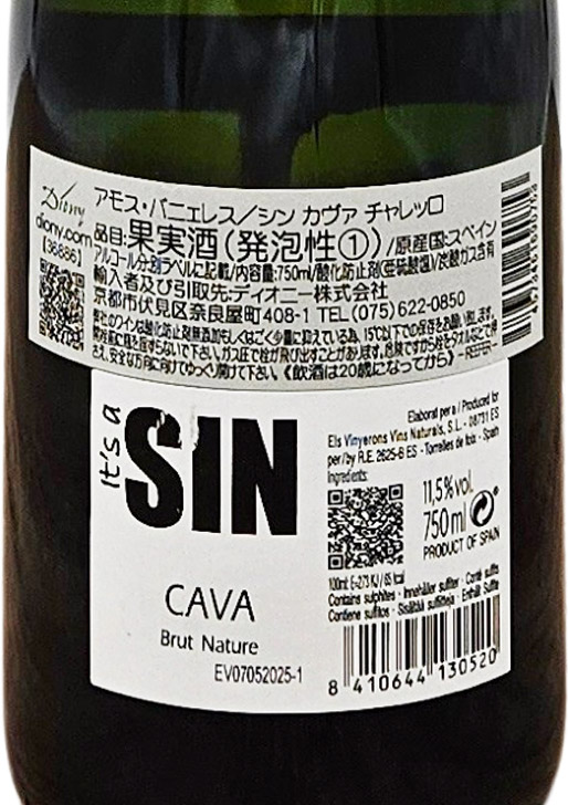 SINプロジェクトはカタルーニャ地方ペネデスの土地で素晴らしいオーガニック栽培のグロワーであるアレックス・ライオスと、一切の添加物を使用しない醸造でかつテロワールをしっかりと表現した素晴らしいワインを造るアモス・バネレスによる新しいプロジェクトです。