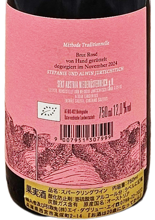 辛口(輸入元様より)外観はうっすらと色着いたピンク。香りは優しく、赤系果実、硬質なミネラルを感じる。口に含むと、きめ細やかなクリーミーな泡と柔らかなテクスチャー。果実香は上品で酸味はやや高め、バランスの調和が美しい。香りが膨らむようにフルートグラスよりも大きめなグラスを推奨します。気軽なペットナットより価格は高いが、シャンパーニュよりはお手頃価格。抜栓後は数日間お楽しみいただけそうです。(2025/11村瀬)