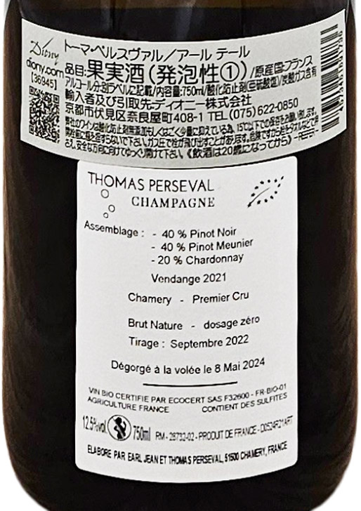 「モンターニュ・ド・ランス」の北西側の麓にある、1級格付けの村「Chamery=シャムリー」で、トーマ・ペルスヴァル氏は、2.5haのブドウ畑から年間12000~14000本のシャンパーニュを生産しています。