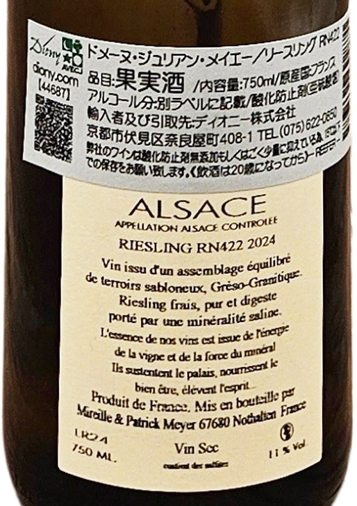 国道422号線(RN422)から程近いSaint Pierre村のリースリングをプレスし、ステンレスタンクで発酵・熟成しました。