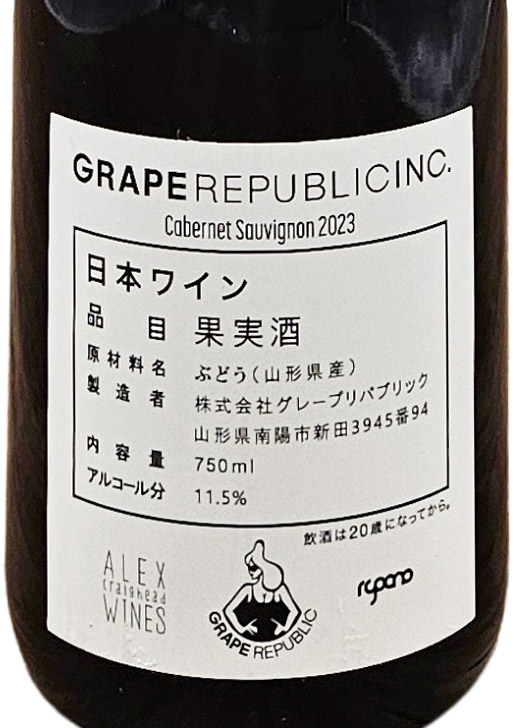 山形県産カベルネソーヴィニヨン (88%)、カベルネフラン (12%)